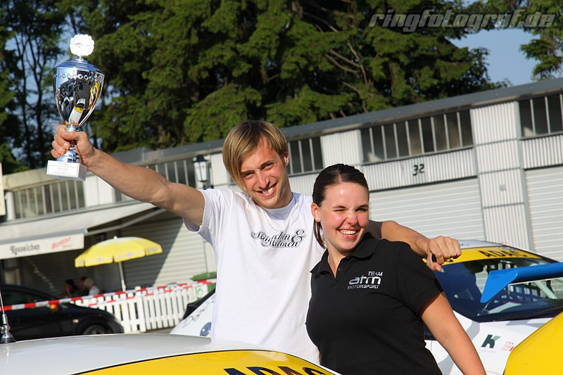 Erheblichen Anteil an diesem Erfolg hat auch Ferdinand Baratella, der als Fahrer der seligen BMW-“Mondrakete“ bereits RCN-Erfahrung vorzuweisen hatte. So ermöglichte ihm Teamchef Werner Meiswinkel zum Dank für seine VLN-Unterstützung einen Gaststart in der RCN. „Ich bin den Puma zum ersten Mal gefahren, aber ich habe das Auto mit vorbereitet und die Reifen waren die selben, die wir in der VLN verwenden. So wusste ich im Vorfeld schon sehr genau, was mit dem Fahrzeug möglich ist“, berichtet der Kfz-Meister, der sich Rundenzeiten unter neun Minuten zum Ziel gesetzt hatte. Als die Uhr nach der ersten Sprintrunde bereits bei 8:49 Minuten stehen blieb, war die Begeisterung am Kommandostand groß. Und nachdem auch die Bestätigungsrunden straffrei blieben, wäre der Klassensieg nur noch durch ein technisches Gebrechen zu vereiteln gewesen.
