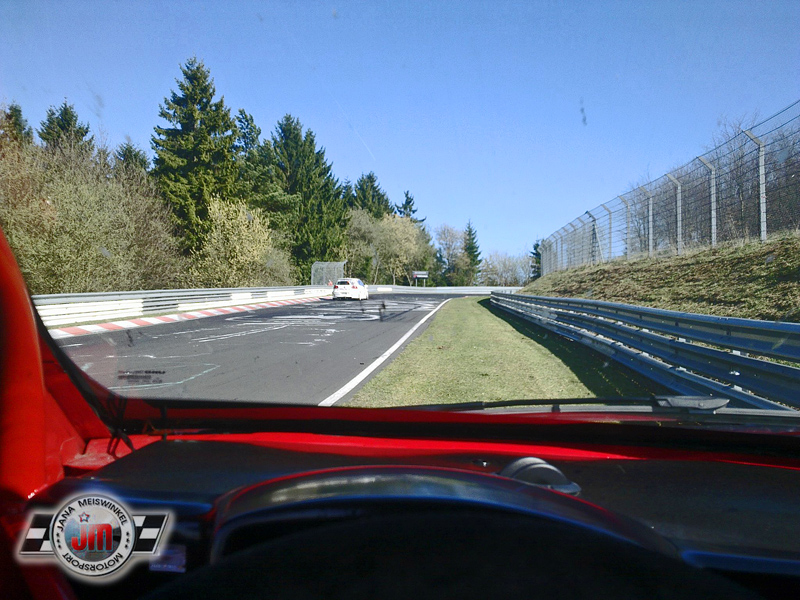Fahrpartner Ernst Berg oblag der Start ins vierstündige Rennen und vom neunten Rang in der Cup3-Klasse pilotierte er „Jacques" bereits zum Zeitpunkt des Fahrerwechsels auf den fünften Rang nach vorne. Eine Sensation bahnte sich an, denn auch Jana Meiswinkel absolvierte -abgesehen von einer lockeren Scheibe in der Fahrertür- problemlos ihre Runden. Auf Rang vier liegend war man an der Boxenmauer schon fertig zum Jubeln. Der Gesamtsieger war längst abgewinkt und im Parc Fermé angekommen, da kam aus dem Galgenkopf der Funkspruch von Jana Meiswinkel: „Auto steht." Ausgangs des Schwalbenschwanz, rund drei Kilometer vor dem Ziel, war das Auto einfach ausgerollt und gab kein Lebenszeichen mehr von sich.
